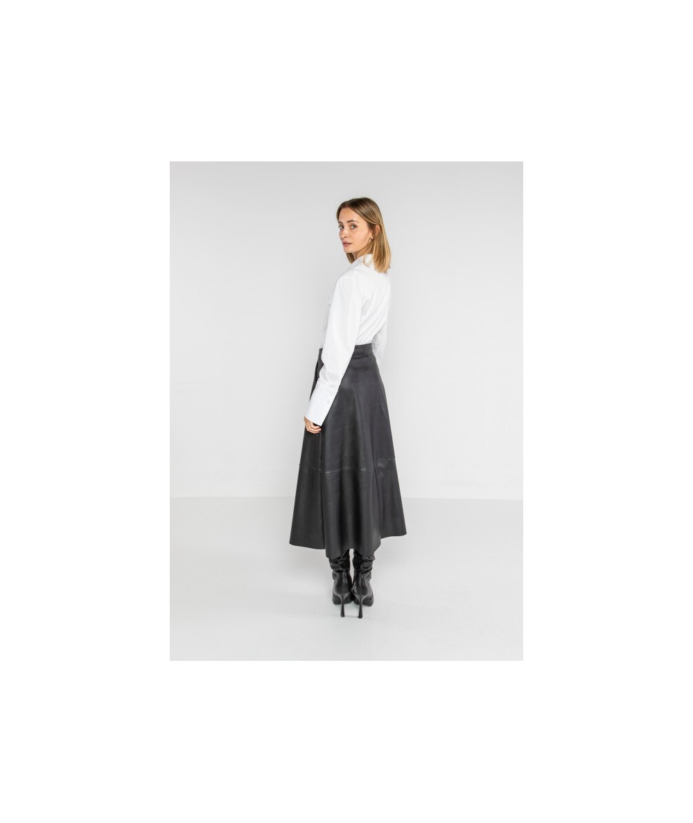 Modello: Gonna midi con linea svasata a ruota, che cade morbida e dona movimento alla figura.