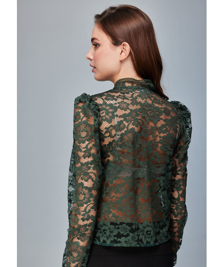 Ideale per chi ama capi romantici e raffinati, questa blusa in prezioso pizzo macramé avvolge con leggerezza e valorizza la femminilità. Le spalle leggermente arricciate donano movimento, mentre il collo alla coreana con goccia e bottoncino gioiello illumina il décolleté. Indossala con un pantalone elegante per un’occasione speciale o sopra un denim per dare un tocco sofisticato al quotidiano.